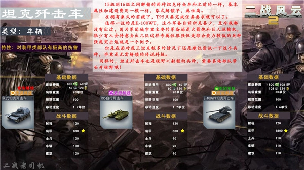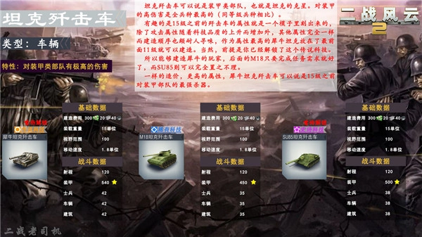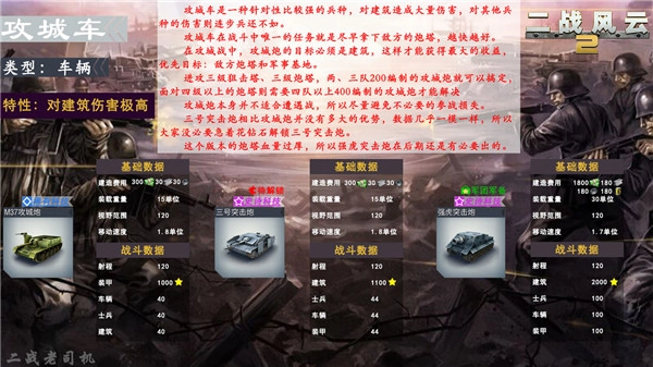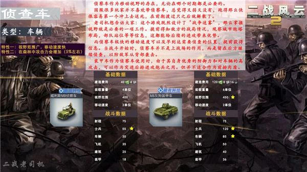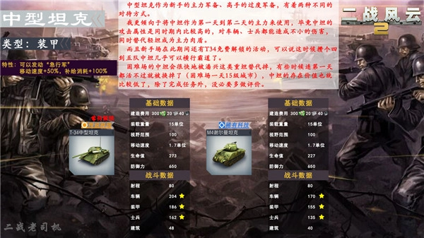 玩家前期使用频率最高的轻型坦克,对士兵的伤害甚至比不上摩托化部队,因此用摩托化部队突击敌方后排炮兵会更有效!(需要注意的是,炮兵属于士兵单位,并非车辆单位哦!)