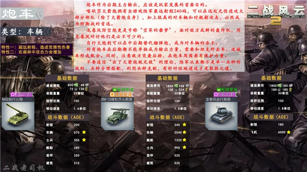 炮车是炮兵中后期的替代选择,它能够自主移动,不需要进入阵地,并且森林中的攻击加成依然存在,几乎可以说是全是优点没有缺点。