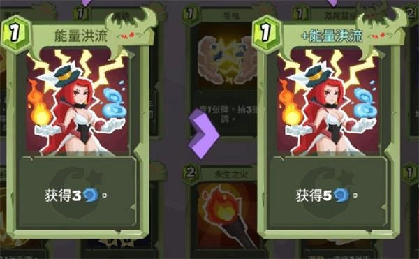 其他和过牌相关的卡牌,也可以拿一张来过渡使用,只要具备弃牌、抽牌或者增加行动力这些效果中的任意一种,都可以选择拿取。
