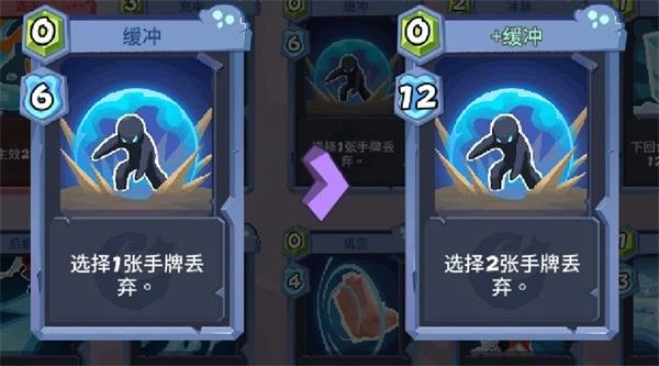 前期做防御过渡时,可以选择“缓冲”,它不仅具备弃牌功能,到了后期无限回合阶段也能派上用场。
