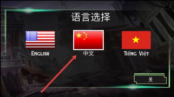 进入游戏后,首先会看到语言选择界面,此时点击中文国旗,就能将游戏语言设置为中文,这样后续操作会更方便。