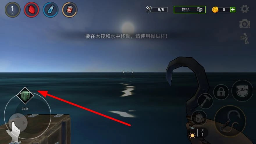 进入游戏后,从漂浮在海洋上的初始木筏开始,收集周围的漂浮物如木板、塑料瓶等,利用基础材料加固木筏,制作简单的工具如鱼竿、斧头。