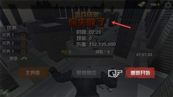 要是游戏没通过,就点重新开始按钮再试一次,把失败的原因好好总结一下,调整破坏的策略和技能使用的时机,争取下一回能顺顺利利完成任务。