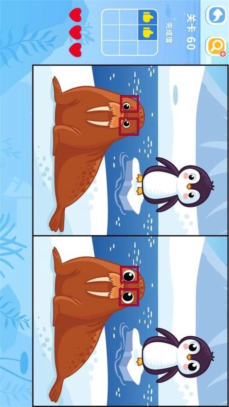 2. 界面布局:游戏界面分为上下两部分,上方是原始图片,下方是待比较的图片。玩家需在两幅图中寻找并点击不同之处。