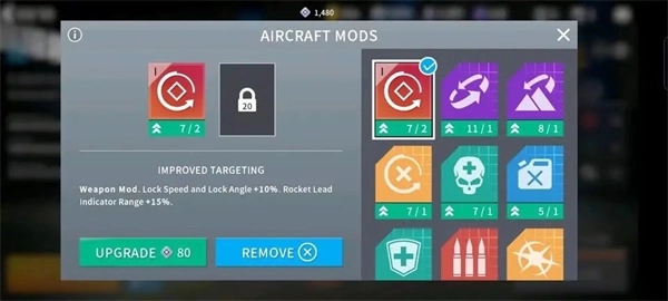 飞机到达16级后箱子里会出现mod,一种可以装在飞机上的部件,可以提升飞机某方面的属性