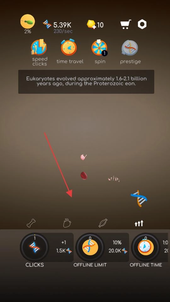 持续游玩游戏,借助时光旅行等功能探索不同阶段,通过升级与点击操作,解锁丰富多样的生命形态,在资源收集和建筑升级的过程中,感受从细胞逐步演化为奇点的乐趣。