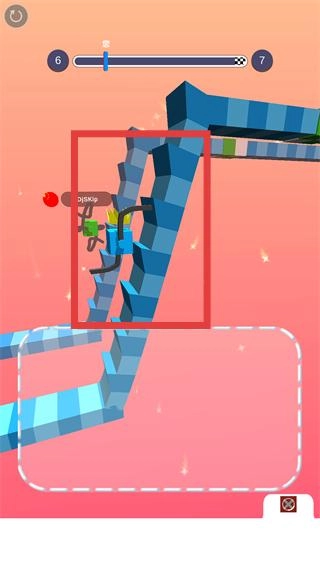 2、向【7】终点行进时,用绘制的腿部适配【蓝色阶梯地形】,避开阻碍保持移动节奏。