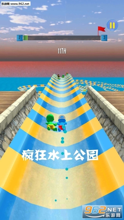 《疯狂水上公园游戏》是一款趣味竞速游戏,蜿蜒的赛道上会出现许多五颜六色的小人,你是其中之一,需在滑滑梯上匍匐前进。游戏中,你可以把其他竞争者撞下赛道,也能踩上加速带提升速度,目标是全力争夺第一名。