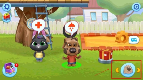 汤姆猫总动员点击每位家族成员头顶上的图标,便可帮助其完成愿望,当房间内存有成员们想要完成的事情时,点击图标便可只身前往,再点击对应的位置即可,比如图中狗狗本头顶出现了“淋浴”的标志,说明它现在想要洗澡,点击它的头顶,便会来到浴室旁,在点击浴室即可。