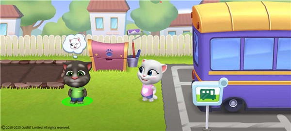 《汤姆猫总动员》游戏中,前院小花园门口有随时待命的小巴士,使用巴士特别货币(可通过日常、或者玩小游戏、购买获得)可搭乘小巴士前往城镇逛街。