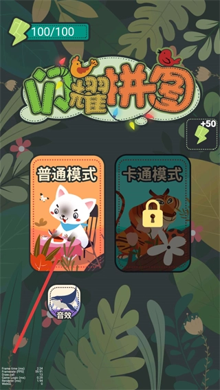 界面设有普通模式与卡通模式两个选项,其中卡通模式目前处于锁定状态,选择普通模式即可开启拼图挑战。