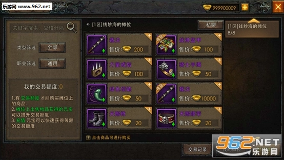 “摆摊系统”支持玩家之间进行装备与道具的交易流通,是游戏里快速获取所需装备和道具的重要途径之一。玩家能够通过消耗充值获得的元宝,快速选购到自己想要的装备,从而实现战力的快速提升。