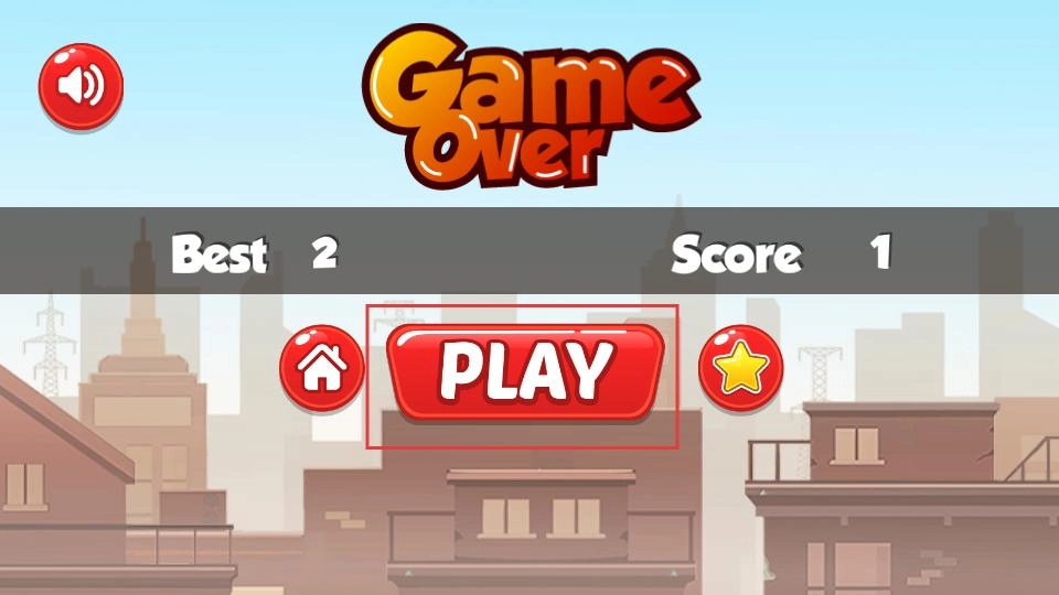 当火柴人碰到障碍物时,游戏就会结束,此时会弹出一个界面,上面显示着最佳成绩和你这次的得分。要是想重新玩跑酷,点击那个红色的PLAY按钮就行。