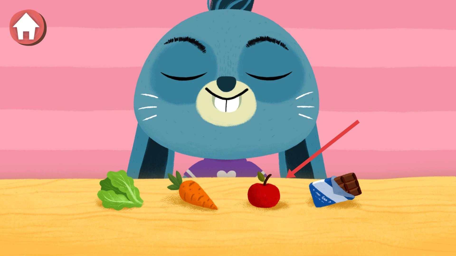 面对蓝色兔子,你可以根据需求挑选桌上的食物进行投喂;不同食物会引发它不同的反应,你需要仔细观察它的喜好,通过精准投喂来推动与它的互动进程。
