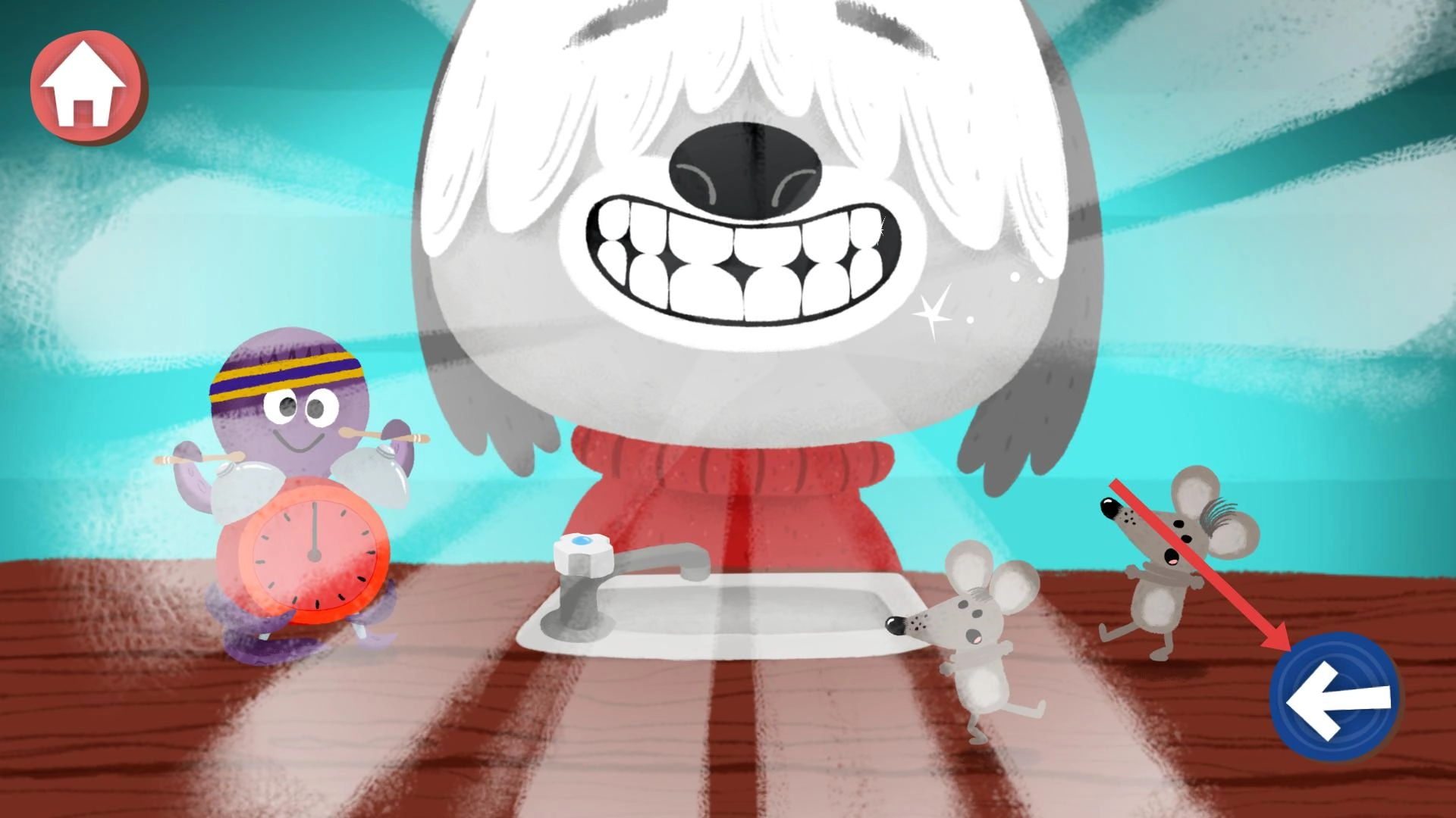 点击红色的播放按钮就能启动游戏,你可以操控角色进行互动,完成刷牙这类日常任务,还能解锁新的剧情和角色。
