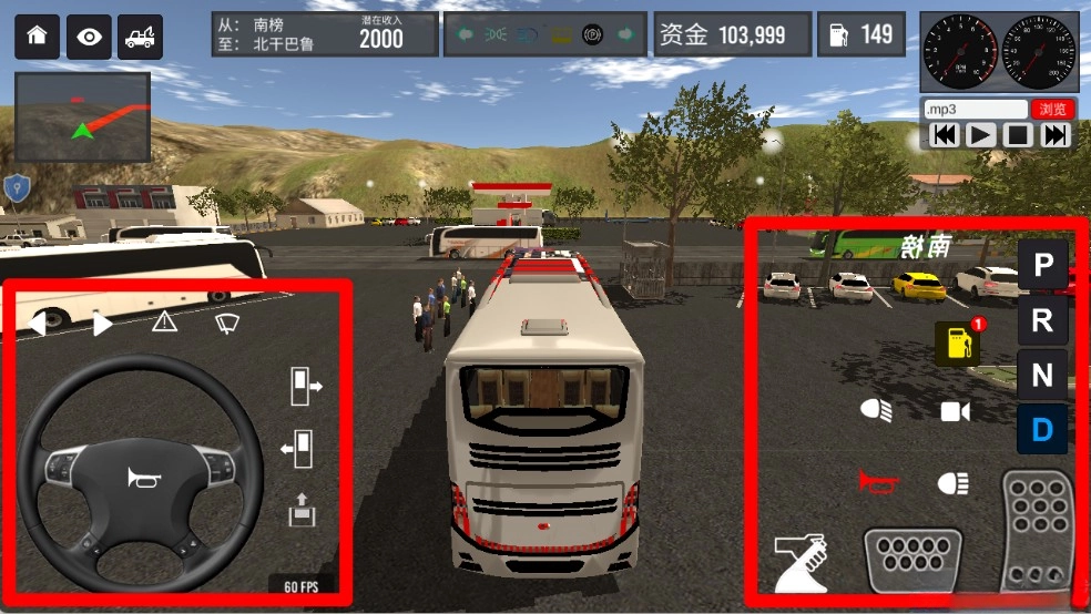 3.驾驶界面包含方向盘、档位、油门与刹车操作,需灵活使用这些控制键,在复杂路况下保持安全稳定驾驶。