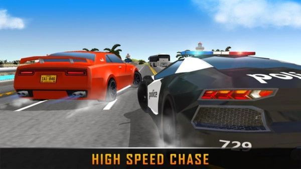 1、玩家开着警车追赶罪犯,罪犯的驾驶技术非常高,你需要用你的驾驶技术去撞罪犯的车。