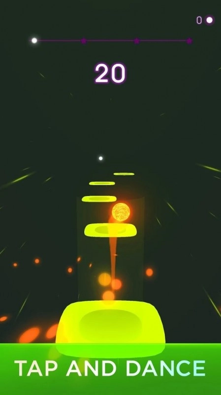 3、聆听快节奏和歌曲,点击屏幕以形成急转弯,收集距离尽可能远的星星。