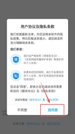 首先,请您同意用户协议与隐私条款,并点击“我同意”按钮。