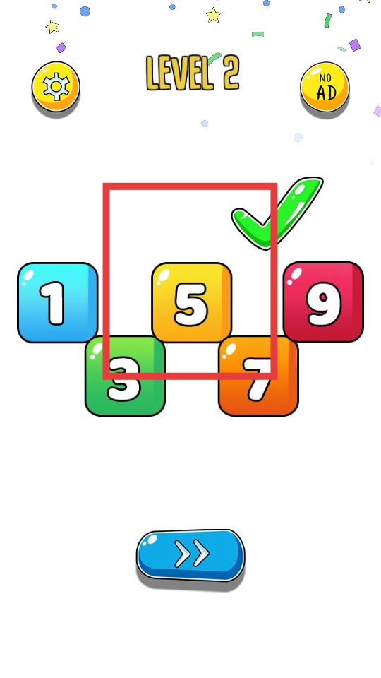 在数字关卡中,需要观察彩色方块上的数字,找出满足奇偶性、顺序等规则的方块,通过点击选中它们来完成挑战。