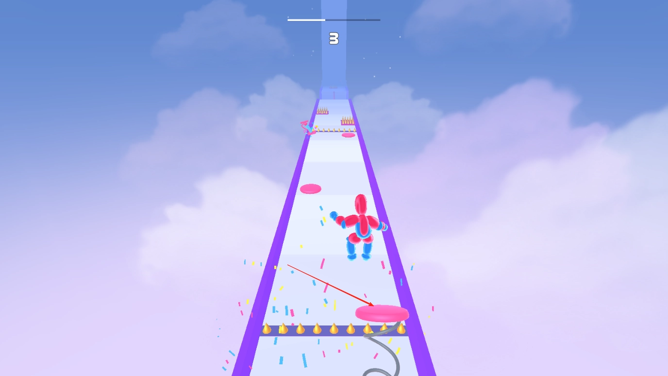 障碍物躲避技巧:时刻留意前方赛道上的尖刺等障碍物,提前判断它们的位置与分布情况,借助左右移动气球人的方式灵活躲开,防止被刺破而致使闯关失败,维持好前进的节奏。