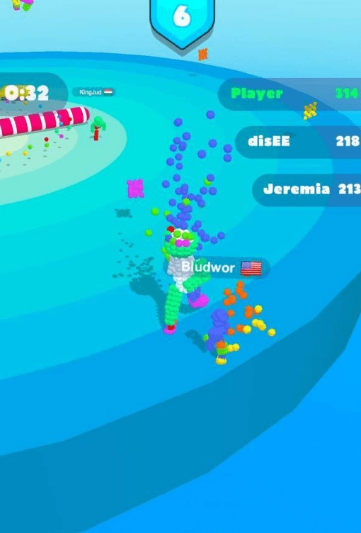 3、滑动手指来操控多色小人持续前进,和其他颜色的小人展开对抗,较量一番谁能抢占更多地盘。