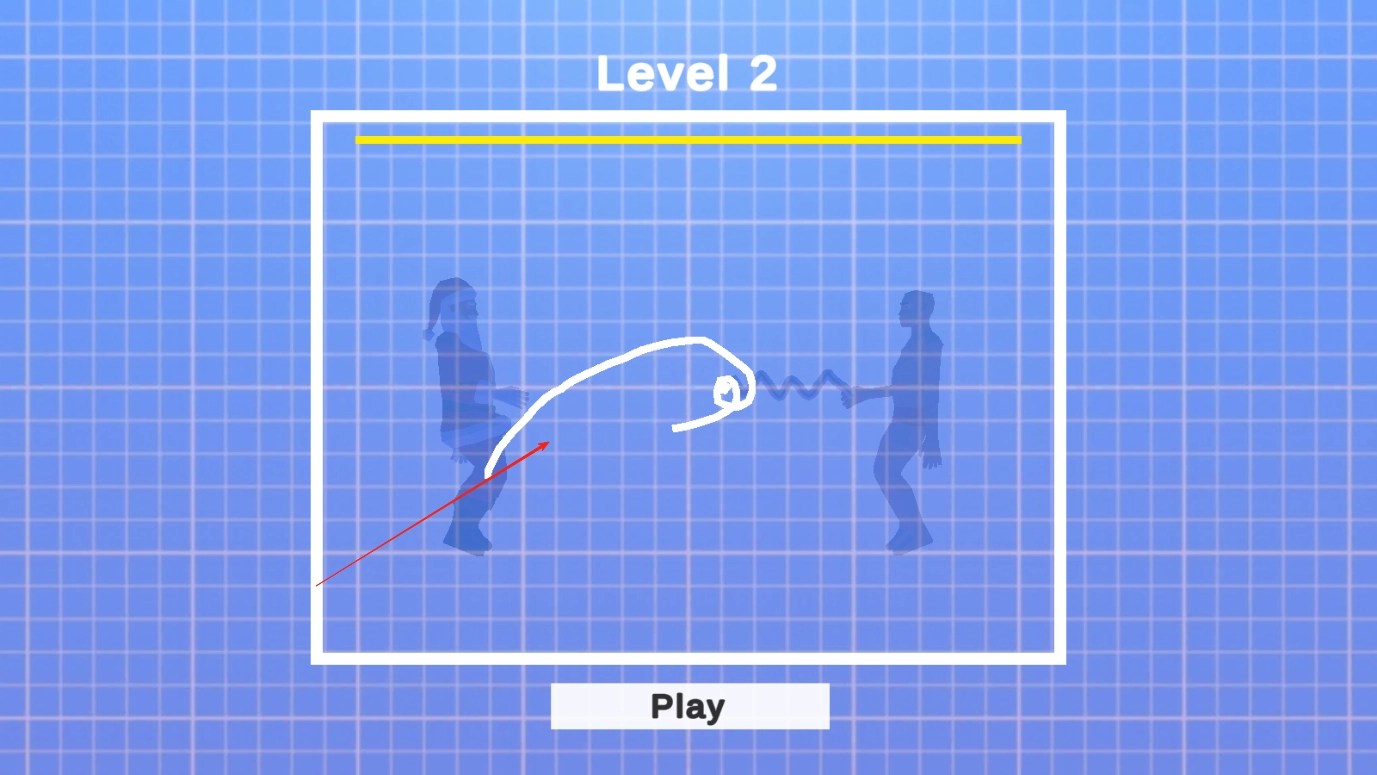 游戏开始时会呈现出一个绘画区域,你可以用手指在这个区域内绘制简单的武器;同时,背景里能隐约看到对手武器的轮廓,你需要画一把能够克制对方武器的兵器。