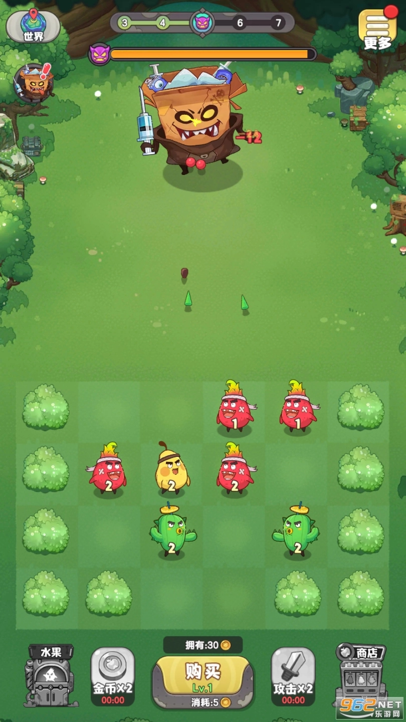 合成升级你的水果骑士们,有策略地搭配三大类型的水果,构筑起固若金汤的防御罩。