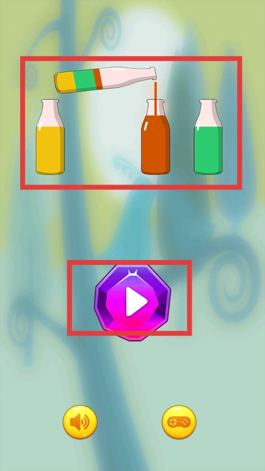 每一关都要将所有瓶子里的液体,按照颜色分类到对应的瓶子中,完成后点击开始按钮,就能进入下一关。