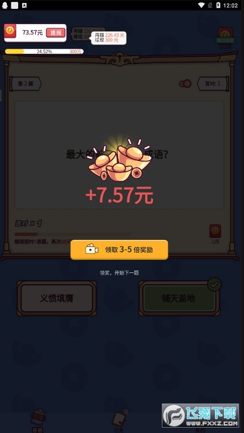 《成语大富翁安卓版》是一款助力用户丰富成语储备的手机游戏。游戏内设置了多样关卡,玩家通过挑战成语答题关卡,完成任务即可获取现金红包奖励。此外,还有众多趣味设定与关卡玩法等待探索,热爱成语游戏的朋友们不妨前来一试!