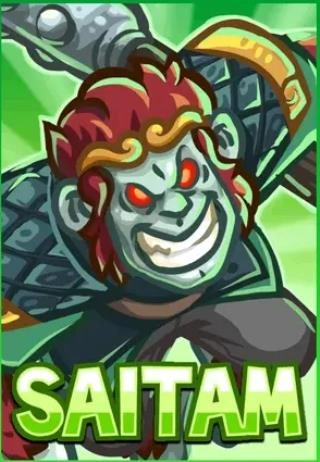 十三、神猴塞塔姆Saitam:这位英雄自身比较脆,普通攻击的伤害比不上沙王,但技能伤害很可观,神怒更是堪称神技,能全屏提升65%的伤害,和图腾搭配起来效果会非常恐怖。