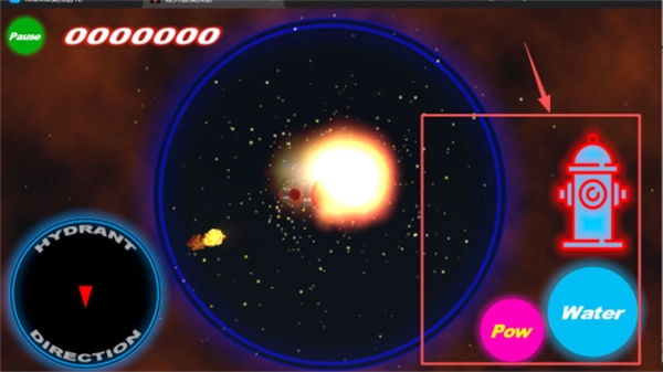 进入游戏后,要是看到星空背景,你可以点击左上角的绿色“Pause”按钮来暂停游戏,也能按蓝色的“Water”按钮或者粉色的“Pow”按钮开展操作。