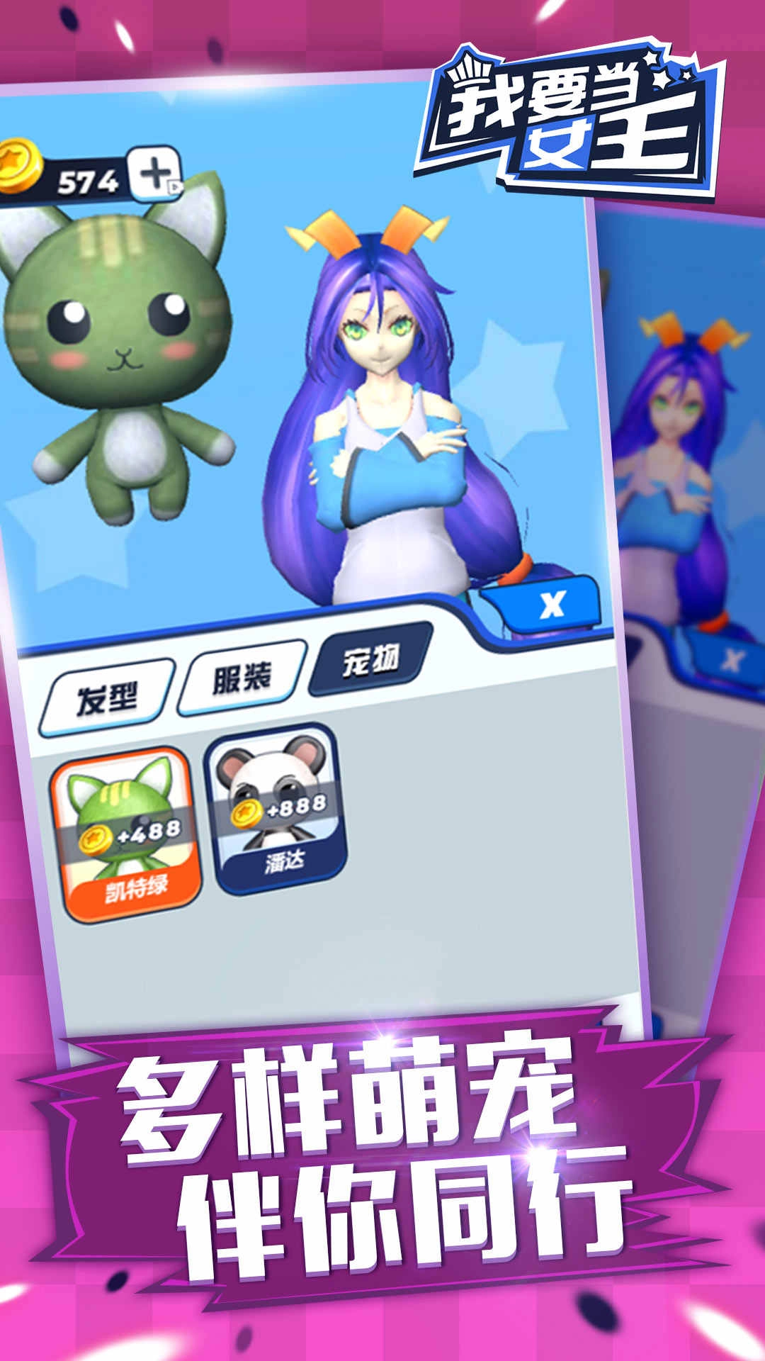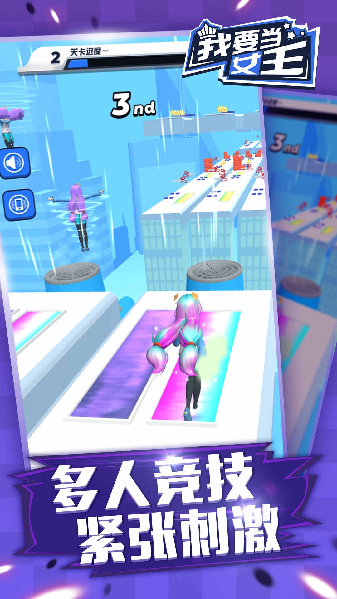 我想成为女王,这款游戏有着3D的逼真画面,玩起来十分带感。它以卡通幻想为主题,玩家在游戏中需要收集道路上的道具来增加头发长度,玩法酷炫十足。在趣味十足的赛道上不断收集头发,让头发变得越来越长,还能提升反应能力和眼手协调能力。