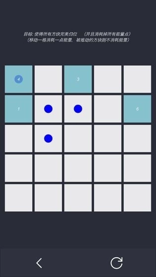 游戏目标:让所有方块都精准回到对应位置,同时把所有能量点都消耗完毕。