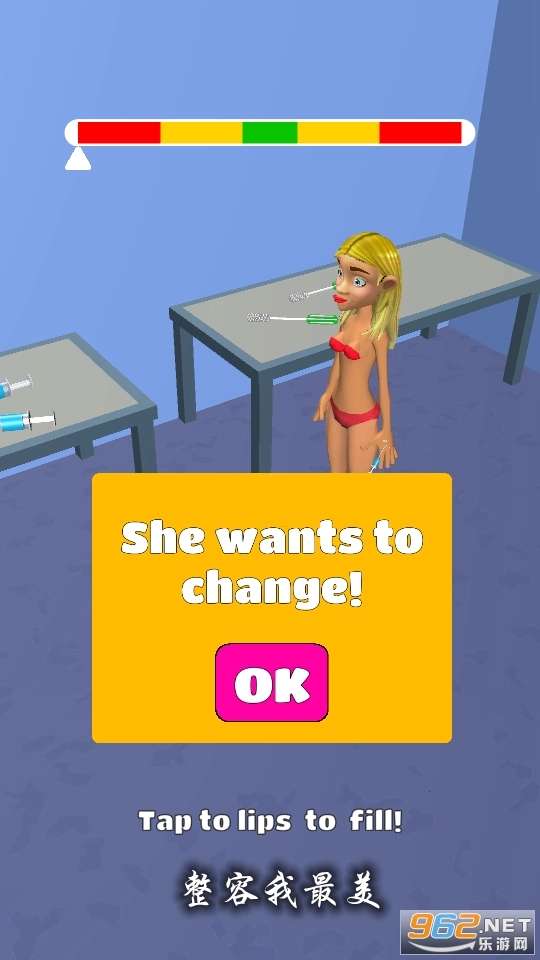 协助顾客达成他们的整容需求即可,游戏的画面与玩法都相当魔性。玩家在游戏里要帮顾客进行整容操作,包括填充唇部、胸部以及皮肤等部位。不过要是填充得太过度,可是会发生爆炸的哦!