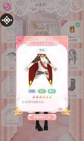 这件上衣在“小王子!”套装里,所需荣誉点是最多的,然而它绝对称得上物超所值,堪称“小王子!”套装的精髓。衣服整体呈现西方皇族独有的风格,是白色修身小制服,搭配着尽显贵气的披风和腰带,衣领袖口等部位以简约的金色点缀,每一处细节都彰显着小王子的尊贵身份。其特殊属性为男装,获取途径是在荣誉商店进行兑换,需要43276荣誉点。