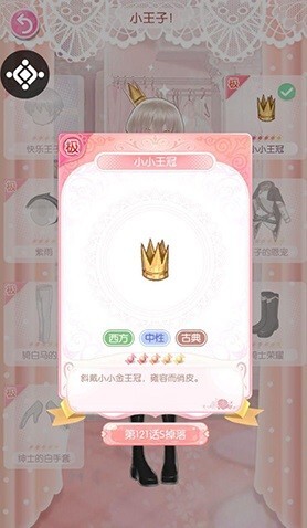与公主有所不同,咱们小王子的王冠是斜着佩戴的。它采用古典纯金质地打造,样式小巧且简约。这顶王冠既彰显出王子尊贵的身份,又展现出他不拘一格的性格特点。其获取途径为在主线121话中取得S评分后掉落。