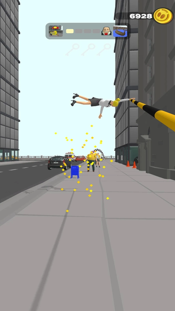 2、通过移动的方式来对角色进行的改变,手速够快才能很好的躲避障碍。