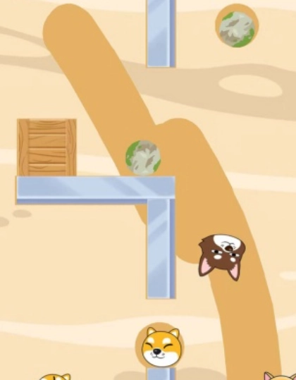 4、确认路线无虞后,引导小黄狗移动,收集全部金色骨头并顺利抵达狗屋,获取星级评价解锁下一关。