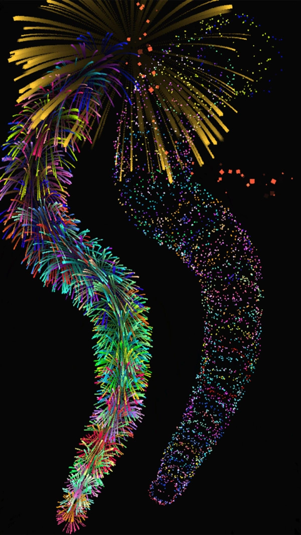 最关键的是简化部分图片,再将它们制作成绚烂的烟花,升腾向天空。