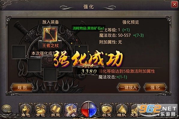 当角色等级提升至31级时,装备强化功能将解锁。此时,玩家可选择除首饰外的任意装备进行强化操作,只需放入目标装备与黑铁矿石即可启动强化流程。强化成功后,装备的基础属性会相应提升;不过强化存在失败可能,且黑铁矿石的纯度越高,强化成功率也会随之提高。若强化失败,装备当前的强化等级不会改变,但用于强化的所有材料将被扣除。