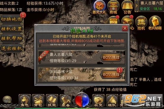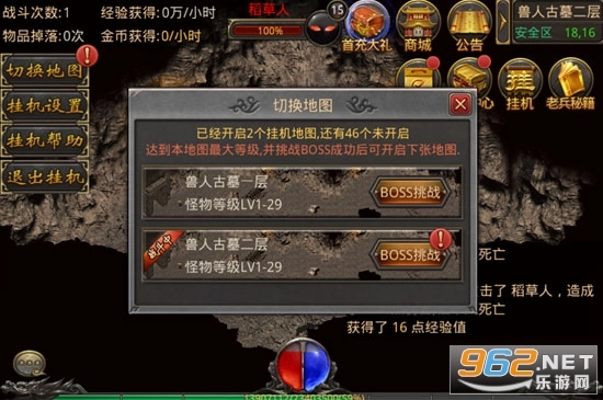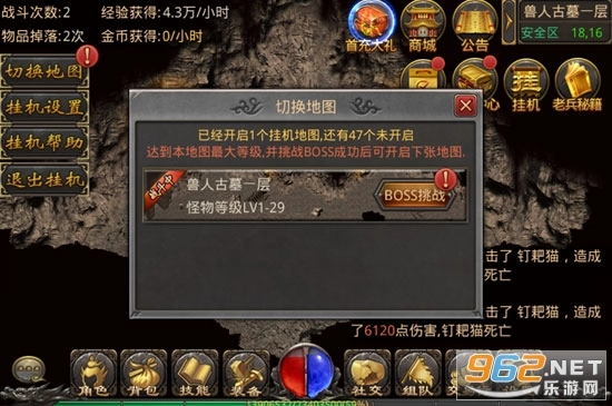 玩家只需点击地图中的挂机按钮,就能进入挂机系统,安全地进行挂机操作。