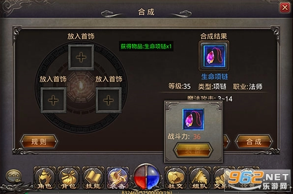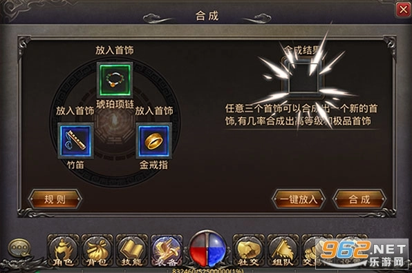 放入三个首饰,可以合成一个更高级别的首饰。