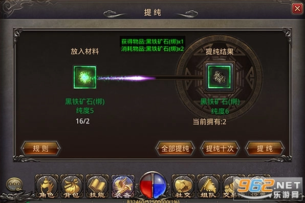 两个纯度相同的黑铁矿石,能够提纯为下一级纯度的黑铁矿石,且提纯的成功率是100%。