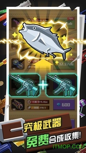 武器简易二合一,无论是沙鹰、枪械、RPG这类常规装备;还是激光炮、能量炮、粒子炮等科幻武器;亦或是香蕉炮、热狗枪、尖叫鸡蛋这类搞怪道具……只有你想不到的,没有你合成不出的!