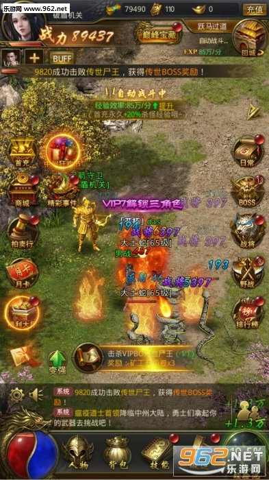 挂机也能轻松战斗,自动打怪打boss,收获更多经验与神器。