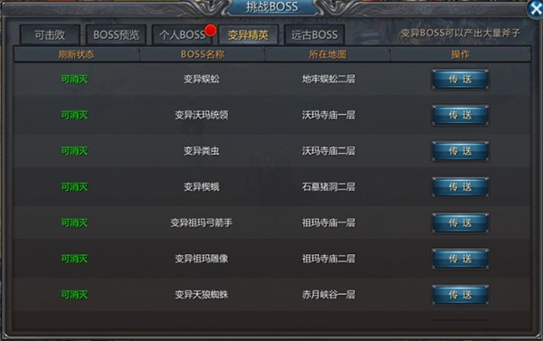 注意:远古boss出现后会随机出现在地图上,切掉落没有制定归属权!
