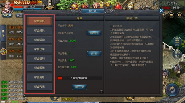 点击帮会活动入口,参与活动就能获取丰厚奖励与帮贡啦!