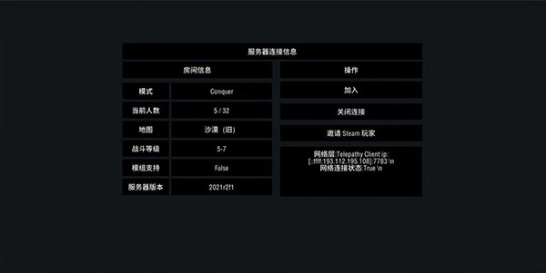 2. 挑选你想进入的房间,点击右侧的连接按钮。 注意:俄服指的是部署在俄罗斯莫斯科的服务器,若玩家不在东北区域,游戏延迟可能会很高。