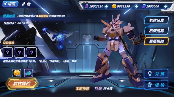 招募机师、获取机体研发成果,是每位司令官都梦寐以求的事——尤其是特装型与极意型机体的入手,或是精锐、英雄级机师的招募,每一项都能带来满满的成就感。接下来就为大家介绍《未来机甲决战》的补给系统,以及其中机体、机师、星辰探险这三大产出内容。